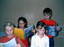 помещении, оборудованном музыкальными инструментами и музыкальной техникой для работы и записи детских голосов.